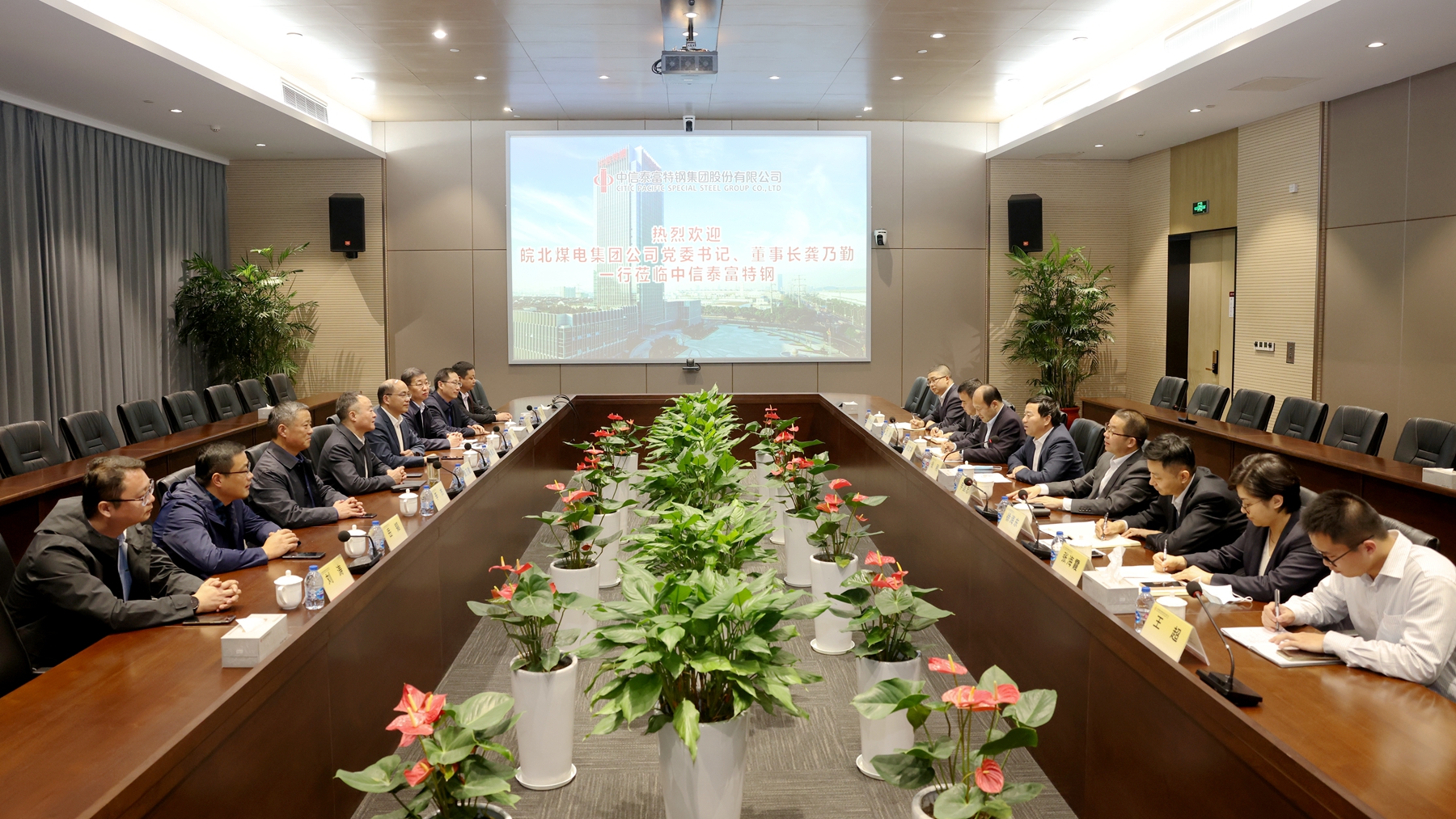 11月2日,韩国h漫 党委书记、董事长龚乃勤一行到中信泰富特钢走访交流。中信泰富特钢党委书记、董事长钱刚,总裁李国忠等在总部机关进行了热情接待。