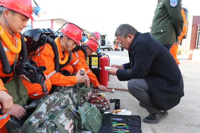 检查过程中,救护队队员反应迅速、精神抖擞,充分展现了皖北煤电救护大队团结战斗、顽强拼搏、无私奉献的救护精神。
