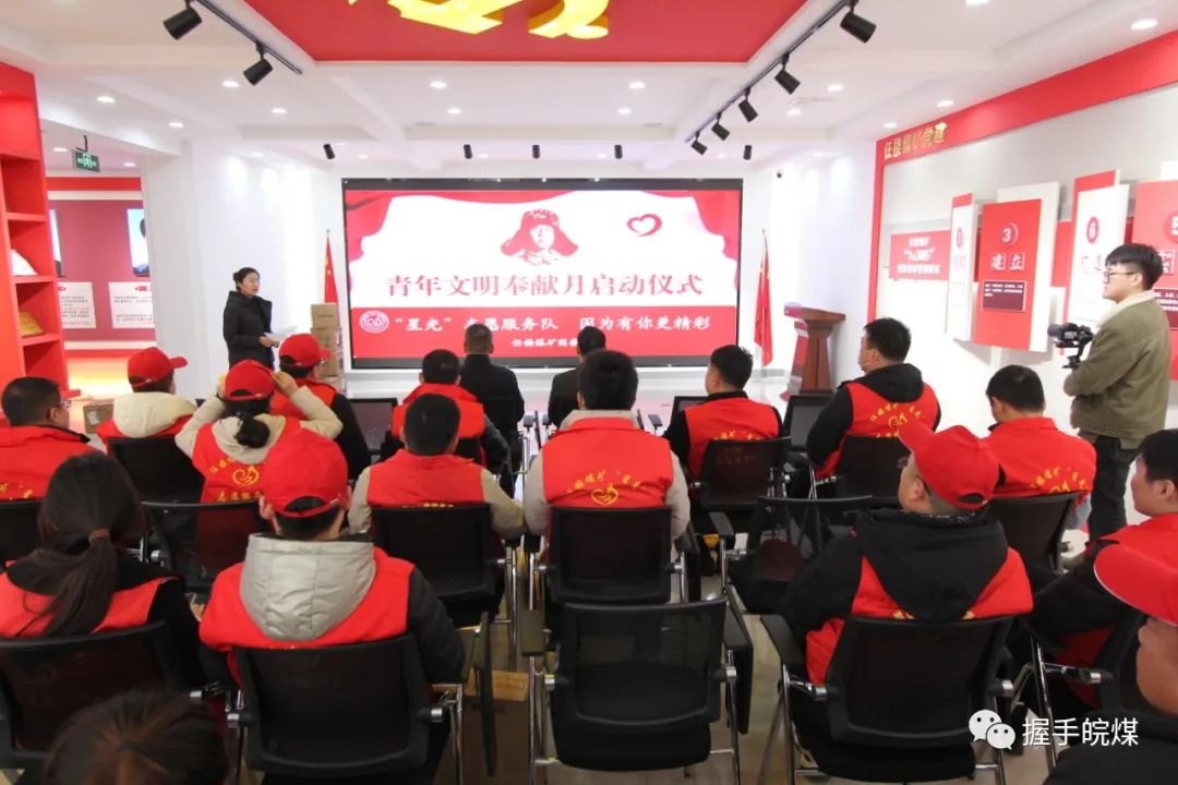 任楼矿在党建领航中心举行“青年文明奉献月”启动仪式。