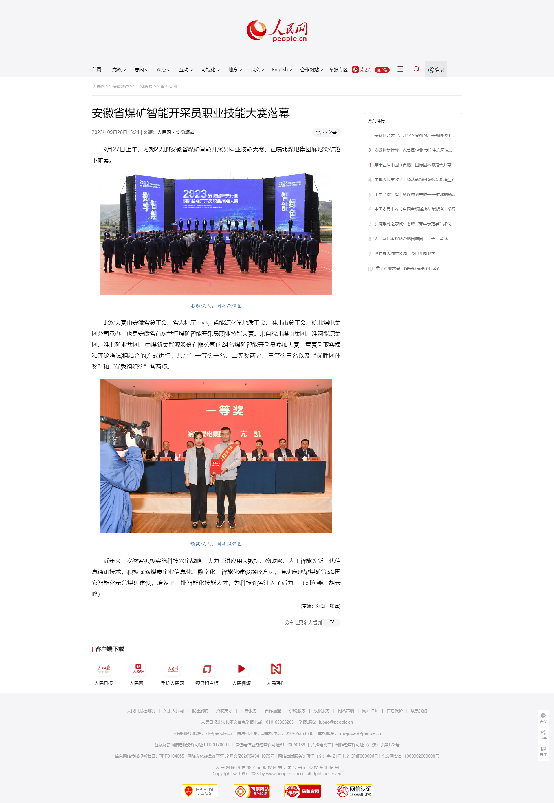 9月28日人民网:安徽省煤矿智能开采员职业技能大赛落幕
