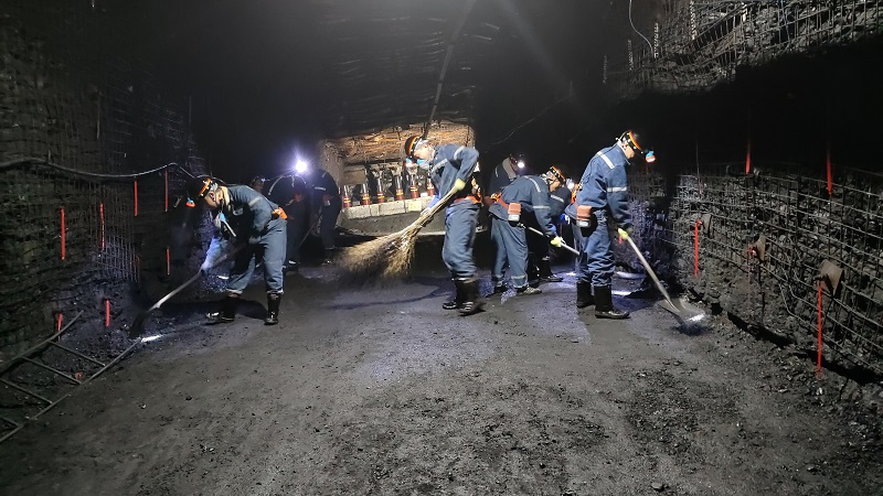 走在9201机巷内,每隔一段的防爆灯把巷道照射的通体明亮,煤壁上各类管线悬挂成一条条直线向远处延伸,安全文化牌板美观醒目,技术管理牌板整齐划一,处处彰显着标准化,定置化,让第一次下井的大学生们眼前一亮,脚下的步伐更加有力。经过大约40分钟的时间,大家来到9201腰巷工作地点,检修班队长对安全注意事项进行了强调要求,身先士卒地带领大家开展标准化机巷创建整理工作。矿灯映照下,一个个挥汗如雨的身影,一张张充满活力的青春脸庞,夹杂着远处机器的隆隆声,构成了一副热火朝天的劳动画面。