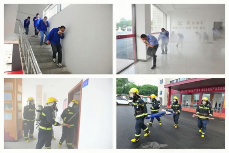 演练开始前,危化品应急救援大队专业人员为全体人员进行了消防安全知识培训,让大家深刻认识了解到火灾的危害和应对防范的方法。随后,演练正式拉开帷幕。模拟火灾场景在办公楼内迅速展开,浓烟滚滚,警报声此起彼伏...撤离过程中 员工们迅速反应,有序地按照指定路线撤离。按照预先学习的疏散步骤和逃生路线,迅速、有序地进行撤离、疏散。演练过程中,员工们行动敏捷、反应迅速,各部门紧密配合,各条消防通道畅通无阻,全体员工安全快速地撤离到指定地点;救护小组穿戴防护装备,搜救被困人员;最终,全体人员按照设定和职责分工圆满完成了疏散演练。