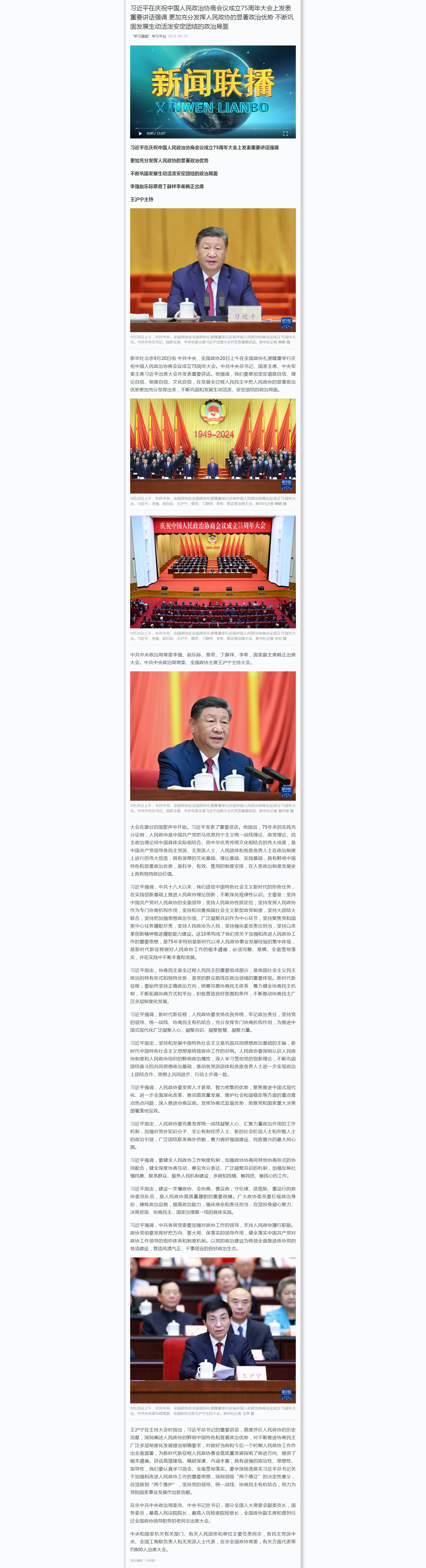习近平在庆祝中国人民政治协商会议成立75周年大会上发表重要讲话强调 更加充分发挥人民政协的显著政治优势 不断巩固发展生动活泼安定团结的政治局面