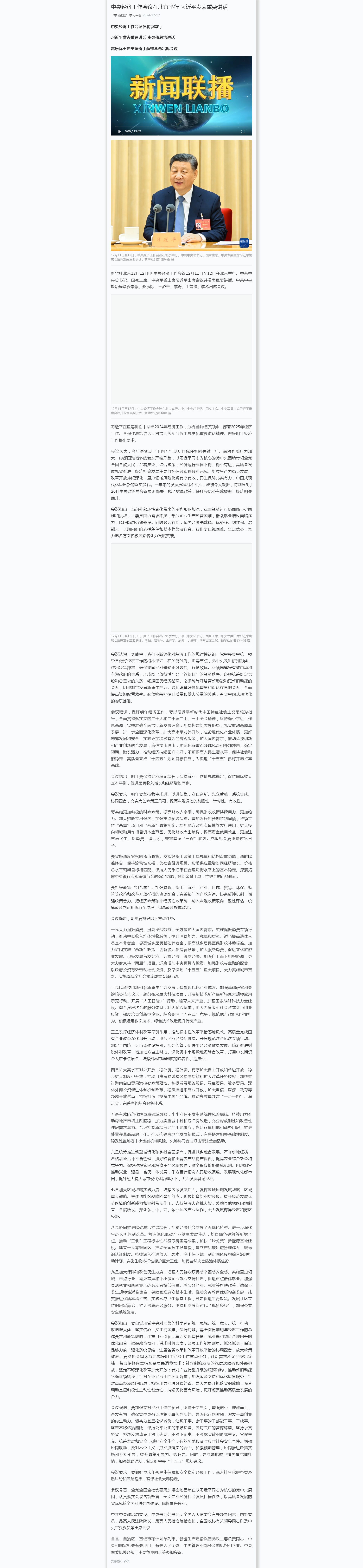 中共中央政治局召开会议 分析研究2025年经济工作 研究部署党风廉政建设和反腐败工作 中共中央总书记习近平主持会议
