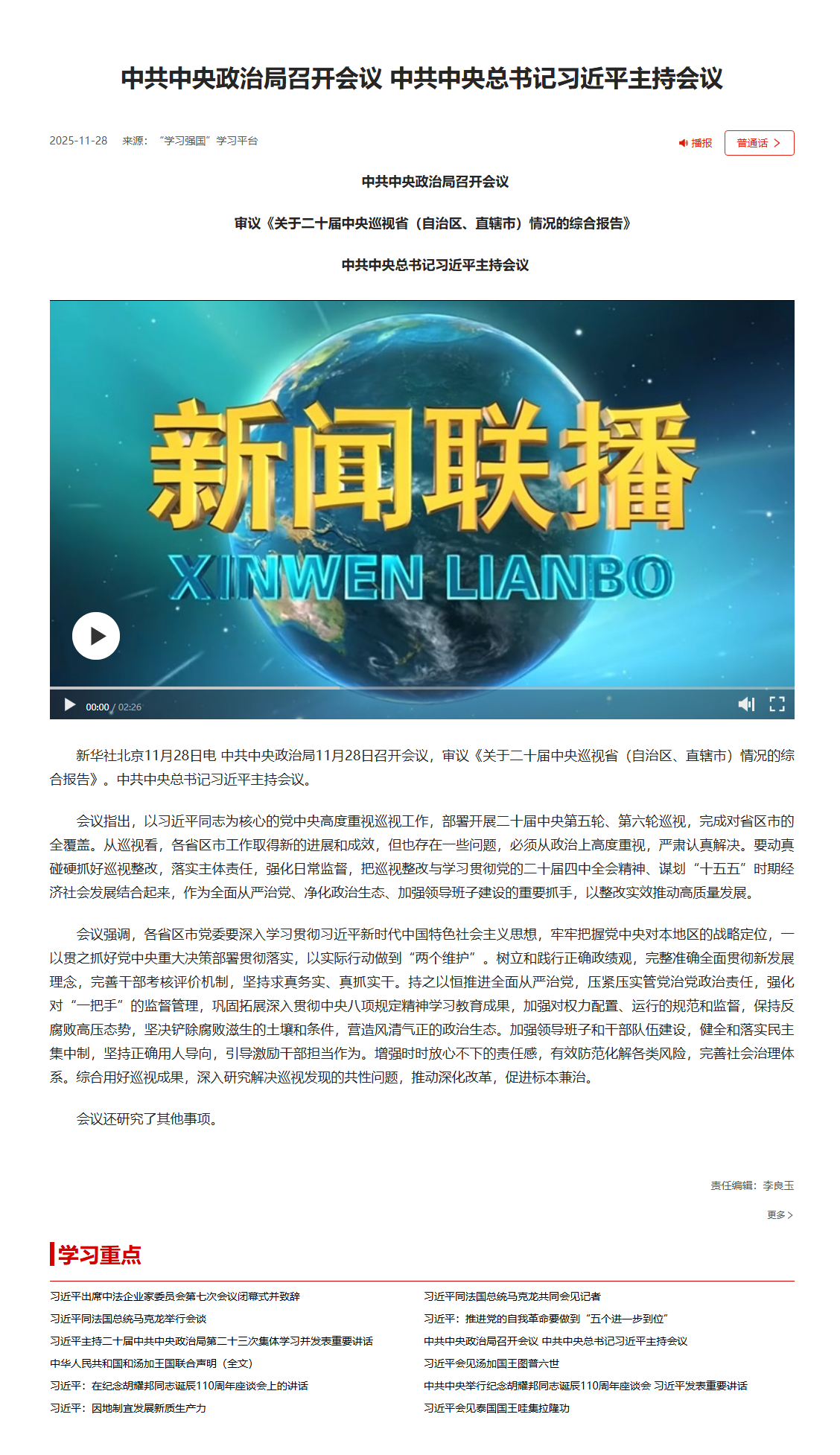 中共中央政治局召开会议 中共中央总书记习近平主持会议